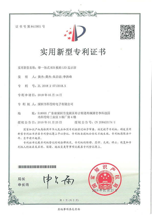 实用新型--带一体式HUB板的LED显示屏