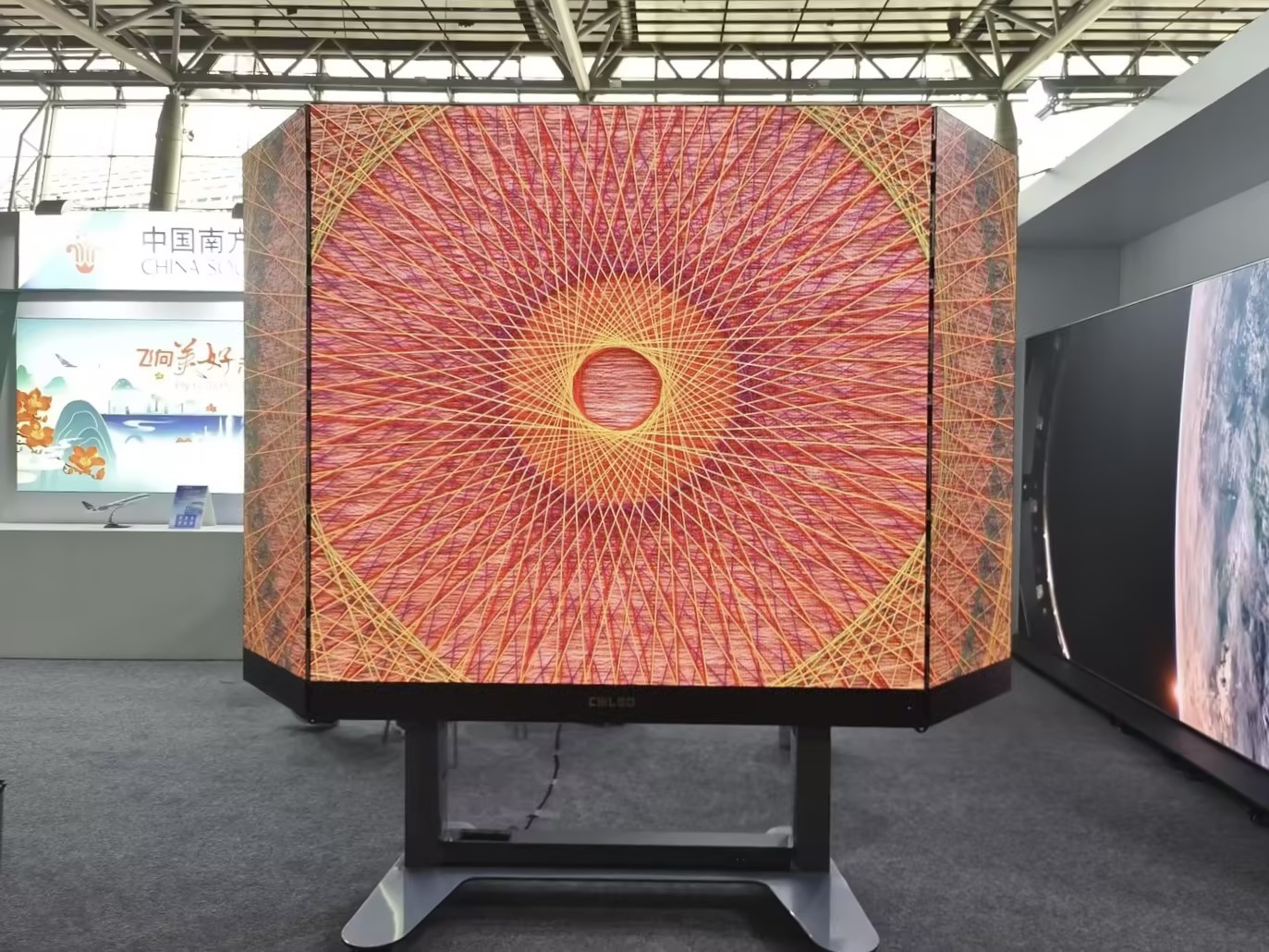 位于10.3馆入口处的多宝电竞主展位上,多宝电竞携带的全球首款向后折叠升降一体机F-Board B系列尤为吸睛,打破了LED显示市场折叠技术的极限,攻克LED大屏折叠铰链全球难题,全球首创的折叠升降功能大幅度减少产品体积,彻底改变设计形态,集美学与实用于一身;高清高刷的显示特点结合数字内容播映,展现出细腻的画面效果和色彩还原度,为各样高精度显示场景所研发,吸引众多行业专家驻足问询。